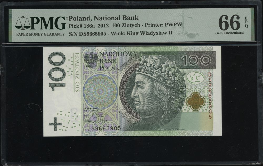 | Opis: | Polska - III Rzeczpospolita Polska (od 1989), 100 złotych, 5.01.2012, seria DS, numeracja 9665905 |