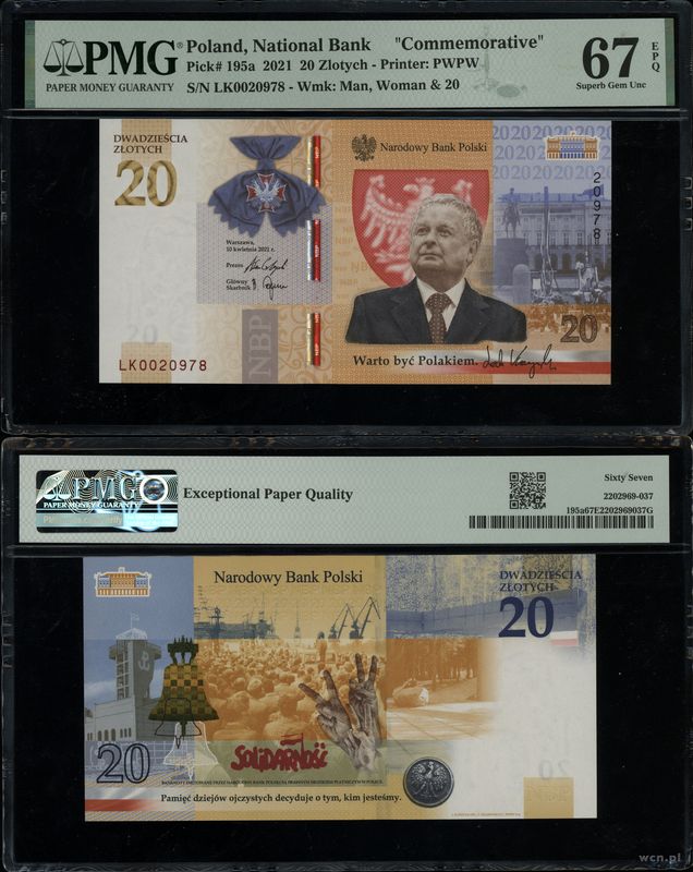 | Opis: | Polska - III Rzeczpospolita Polska (od 1989), 20 złotych, 10.04.2021, Lech Kaczyński - Warto być Polakiem, banknot projektu Justyny Kopeckiej, seria LK, numeracja 0020978 |