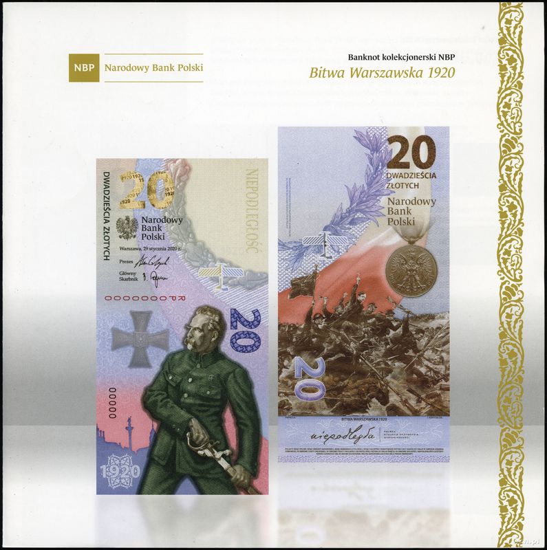 | Opis: | Polska - III Rzeczpospolita Polska (od 1989), 20 złotych, 29.01.2020, 100 rocznica – Bitwa Warszawska 1920 wg. projektu Justyny Kopeckiej, seria RP, numeracja 0048941 |