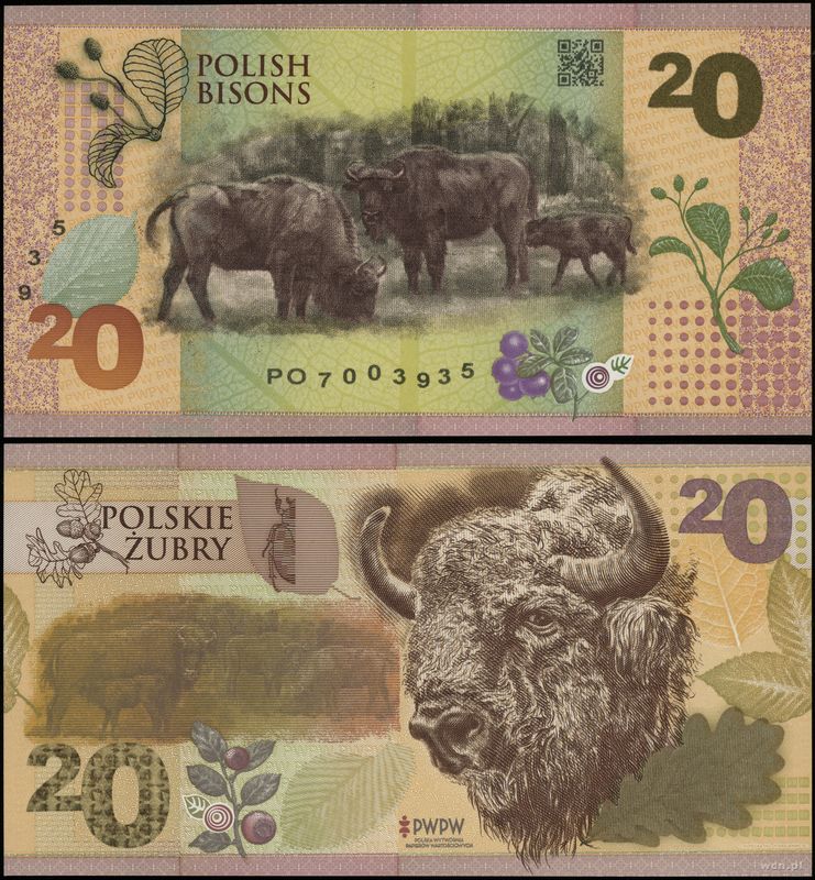 Polska, banknot testowy PWPW - 20 units - Polskie Żubry, 2018