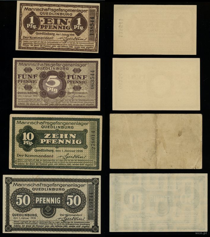 | Opis: | Niemcy - Quedlinburg, zestaw 4 banknotów, 1916, nominały: 1 fenig, 5 fenigów, 10 fenigów (I-/II+) i 50 fenigów (III+) |