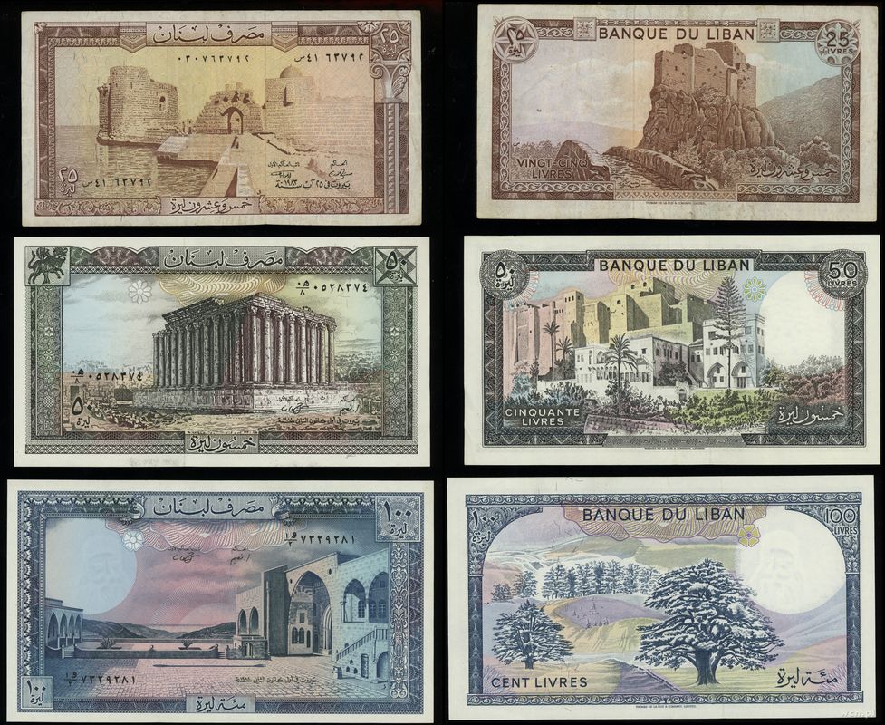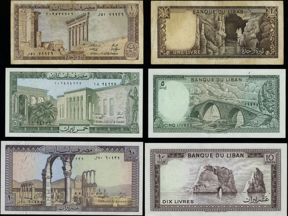 Liban, zestaw 6 banknotów, lata 80' XX wieku