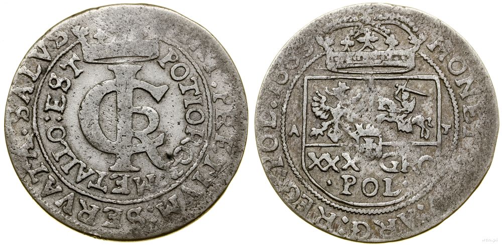 | Opis: | Polska - Jan II Kazimierz Waza (1649–1668) - monety koronne, tymf (złotówka), 1663 AT, Kraków, SERVATA SALVS na awersie, ARG na rewersie |