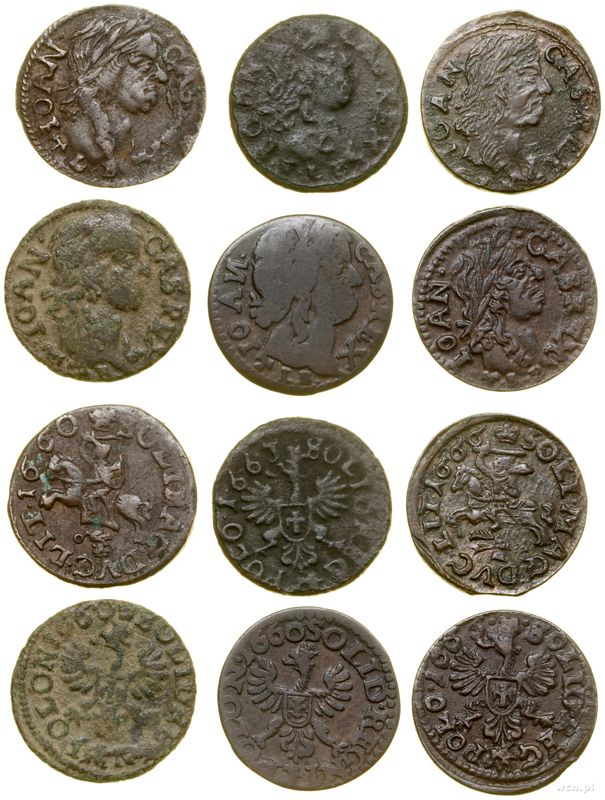 | Opis: | Polska - Jan II Kazimierz Waza (1649–1668), zestaw 6 szelągów miedzianych (boratynek), szelągi koronne 2 x 1660 TLB (w jednej z monet odwrócone litery N) / 1 x 1663 TLB / szelągi litewskie: 1660 TLB, 1665 TLB (Kowno) |