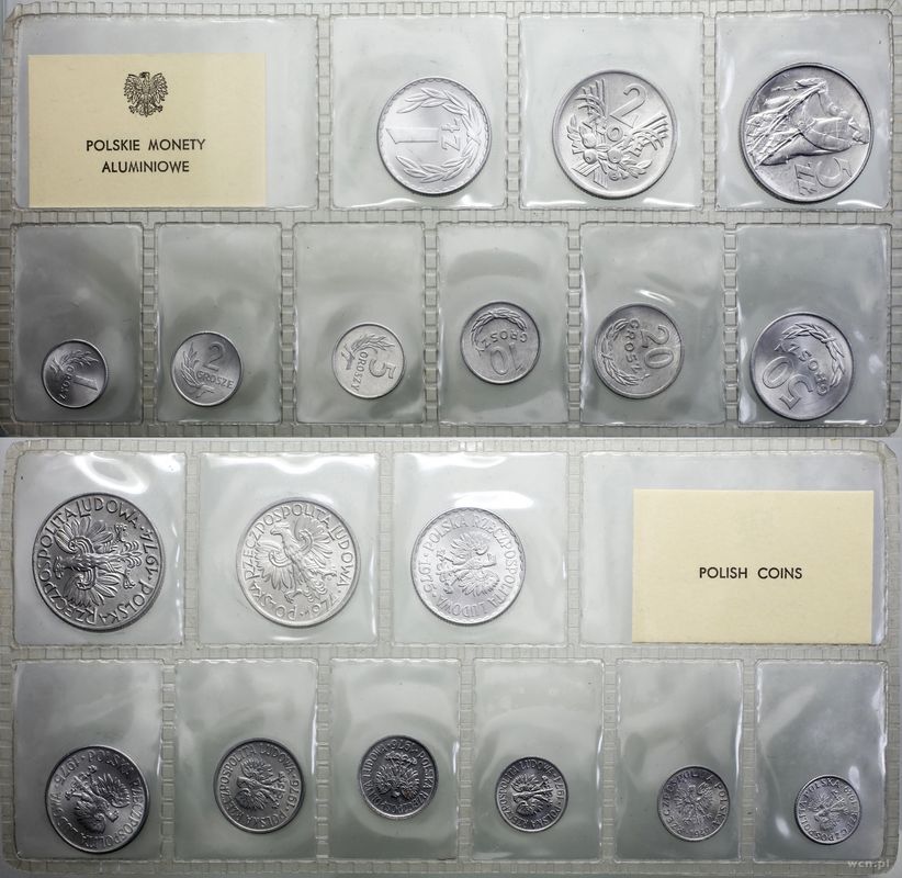 | Opis: | Polska - Polska Rzeczpospolita Ludowa (1952–1989) - monety obiegowe i kolekcjonerskie, zestaw "Polskie monety aluminiowe", w skład zestawu wchodzą: 5 złotych 1974 (Rybak), 2 złote 1974, 1 złoty 1975, 50 groszy 1975, 20 groszy 1976, 10 groszy 1976, 5 groszy 1971, 2 grosze 1949, 1 grosz 1949 |