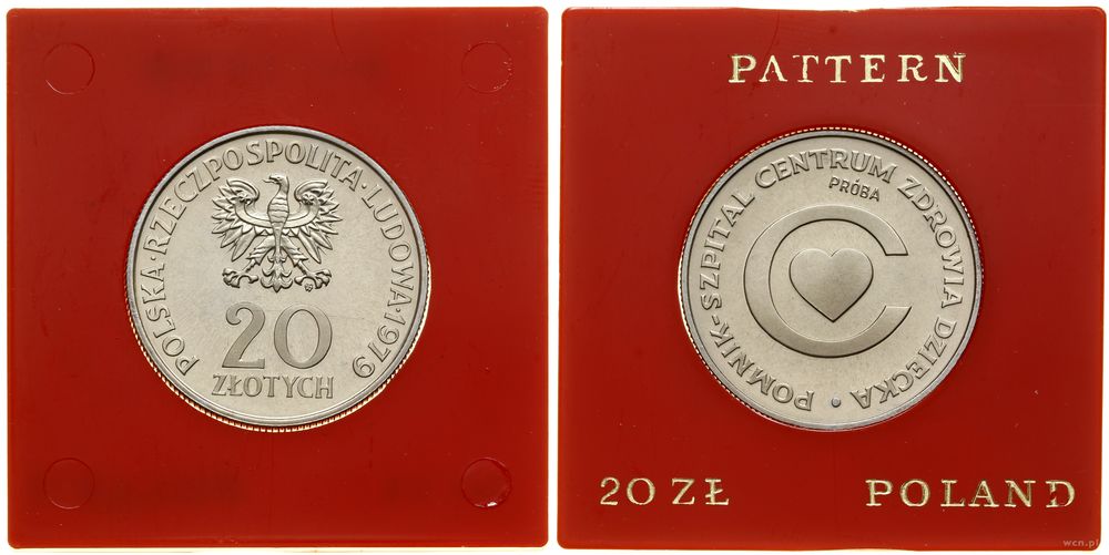| Opis: | Polska - Polska Rzeczpospolita Ludowa (1952–1989) - monety próbne, 20 złotych, 1979, Warszawa, Pomnik-Szpital Centrum Zdrowia Dziecka, wypukły napis PRÓBA |
