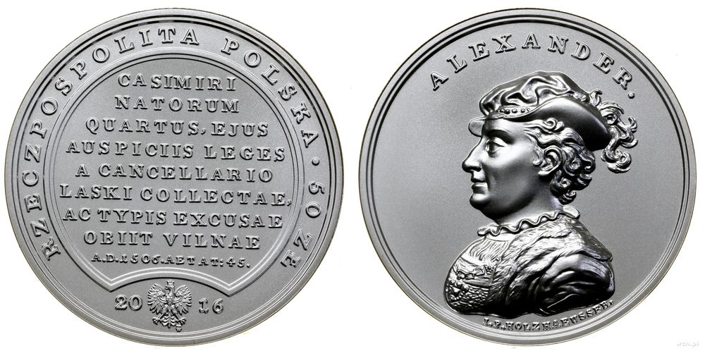 | Opis: | Polska - III Rzeczpospolita Polska (od 1989) - monety kolekcjonerskie, 50 złotych, 2016, Warszawa, Aleksander Jagiellończyk – medalowe z Serii Skarby Stanisława Augusta |