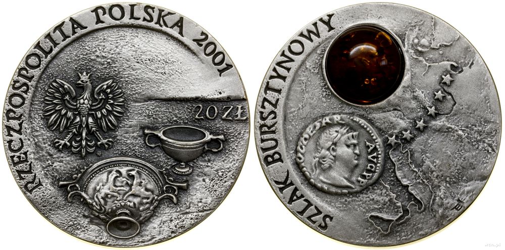 | Opis: | Polska - III Rzeczpospolita Polska (od 1989) - monety kolekcjonerskie, 20 złotych, 2001, Warszawa, Szlak Bursztynowy |
