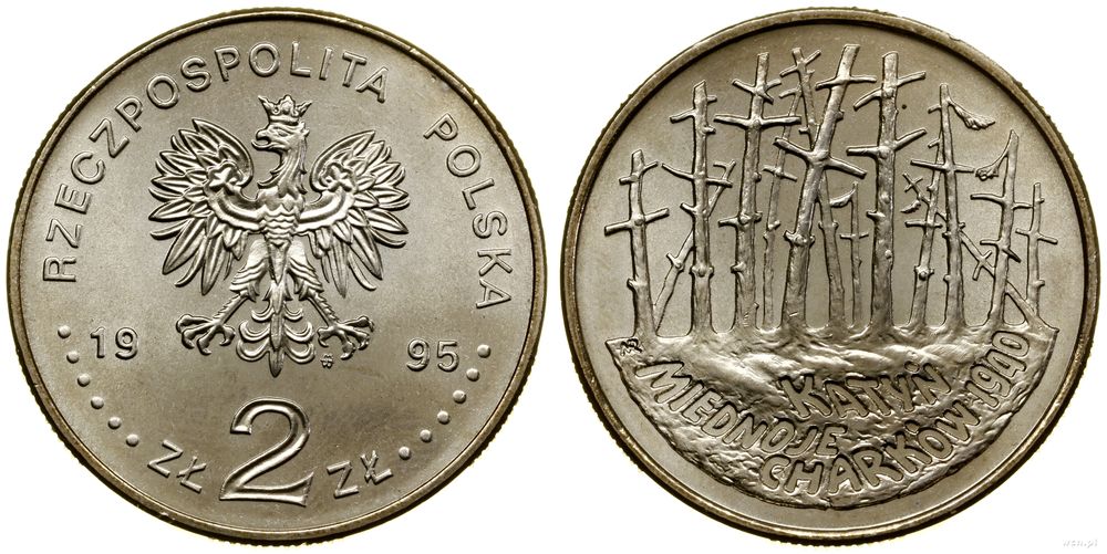 | Opis: | Polska - III Rzeczpospolita Polska (od 1989) - monety obiegowe, 2 złote, 1995, Warszawa, Katyń, Miednoje, Charków 1940 |