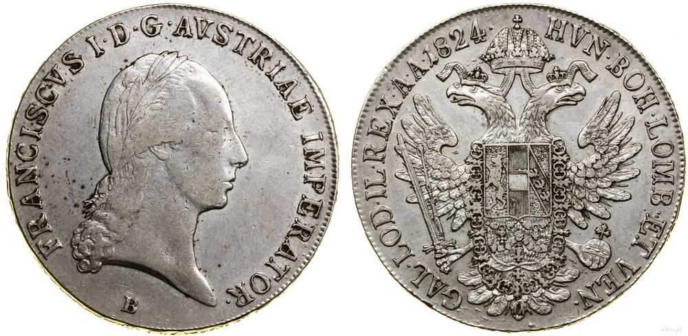 | Opis: | Austria - Franciszek II (1792–1835), talar, 1824 B, Kremnica |