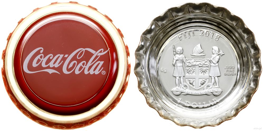 | Opis: | Fidżi - Elżbieta II (1952–2022), 1 dolar (moneta w formie kapsla), 2018, Perth, Aw: głodło Fidżi, nominał, data oraz waga i próba srebra; Rw: logo Coca-Coli |