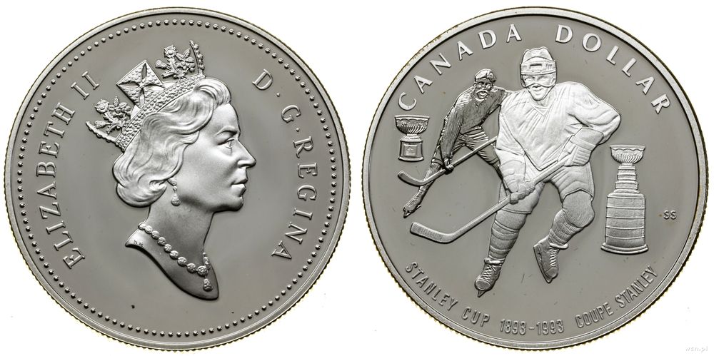| Opis: | Kanada - Elżbieta II (1952–2022), 1 dolar, 1993, Ottawa, 100. rocznica – Puchar Stanleya |