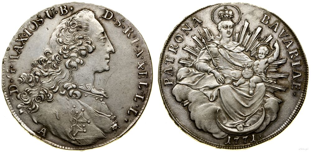 | Opis: | Niemcy - Bawaria - Maksymilian III Józef (1745–1777), talar, 1771 A, Amberg, typ PATRONA BAVARIAE |