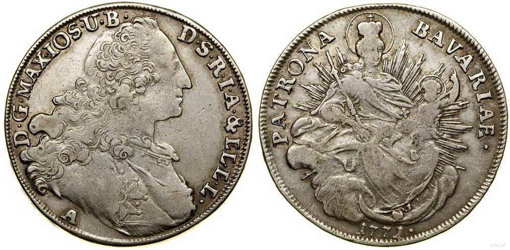 | Opis: | Niemcy - Bawaria - Maksymilian III Józef (1745–1777), talar, 1771 A, Amberg, typ PATRONA BAVARIAE |