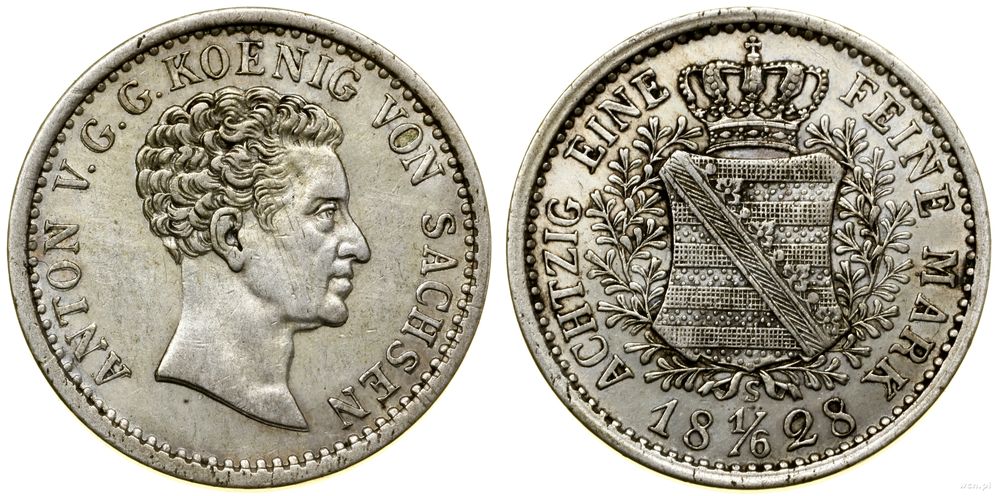 | Opis: | Niemcy - Saksonia - linia albertyńska (1547–1918) - Antoni (1827–1836), 1/6 talara, 1828, Drezno |