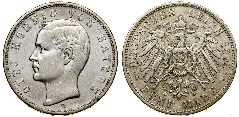 | Opis: | Niemcy - Bawaria - Otto (1886–1913), 5 marek, 1893 D, Monachium |