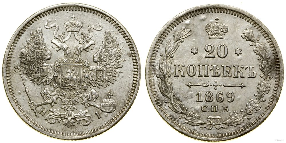 Rosja, 20 kopiejek, 1869 СПБ HI
