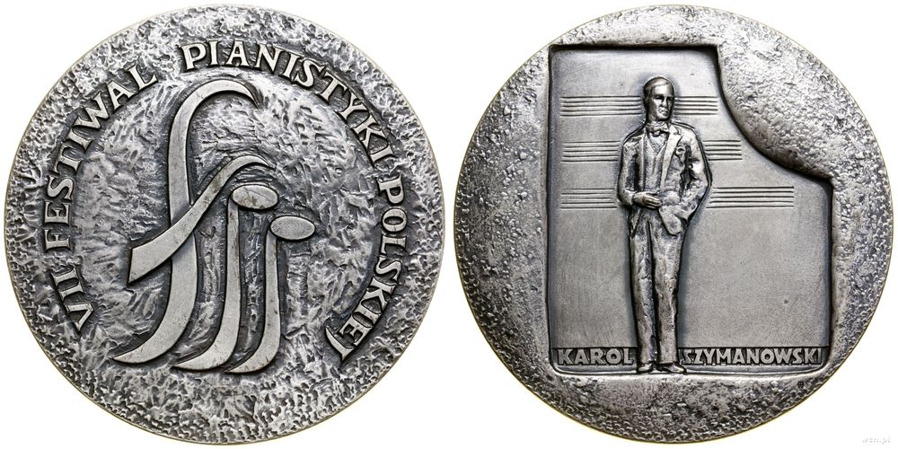 | Opis: | Polska - Polska Rzeczpospolita Ludowa (1952–1989), VII Festiwal Pianistyki Polskiej, 1973, Warszawa, Aw: Stylizowany klucz wiolinowy i dwie nuty, VII FESTIWAL PIANISTYKI POLSKIEJ, Rw: Postać stojąca na wprost na tle klapy fortepianu, na dole KAROL - SZYMANOWSKI, projektował Stanisław Horno-Popławski, wykonała Stanisława Wątróbska |