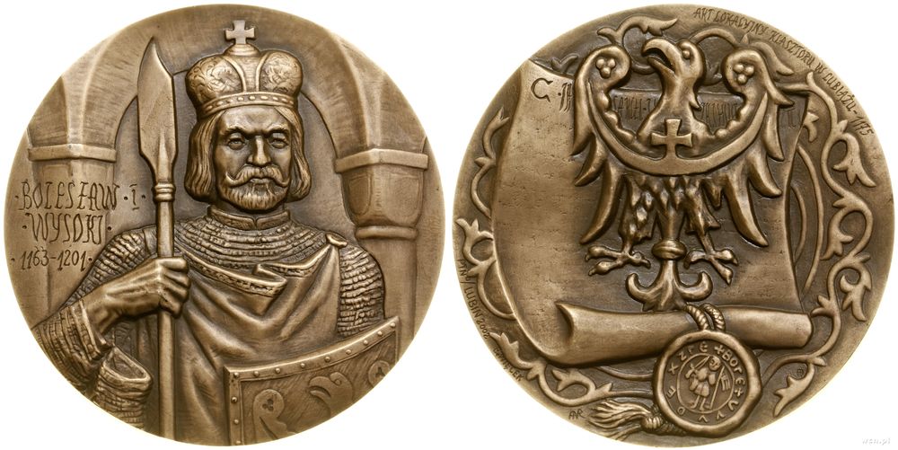 | Opis: | Polska - III Rzeczpospolita Polska (od 1989), Bolesław I Wysoki, 2002, Warszawa, Aw: Półpostać władcy na wprost, z lewej • BOLESŁAW • I • / • WYSOKI • / • 1163-1201 •, Rw: Zwój, na którym śląski Orzeł, AKT LOKACYJNY KLASZTORU W LUBIĄŻU - 1175, projektowali Roussana i Andrzej Nowakowscy |