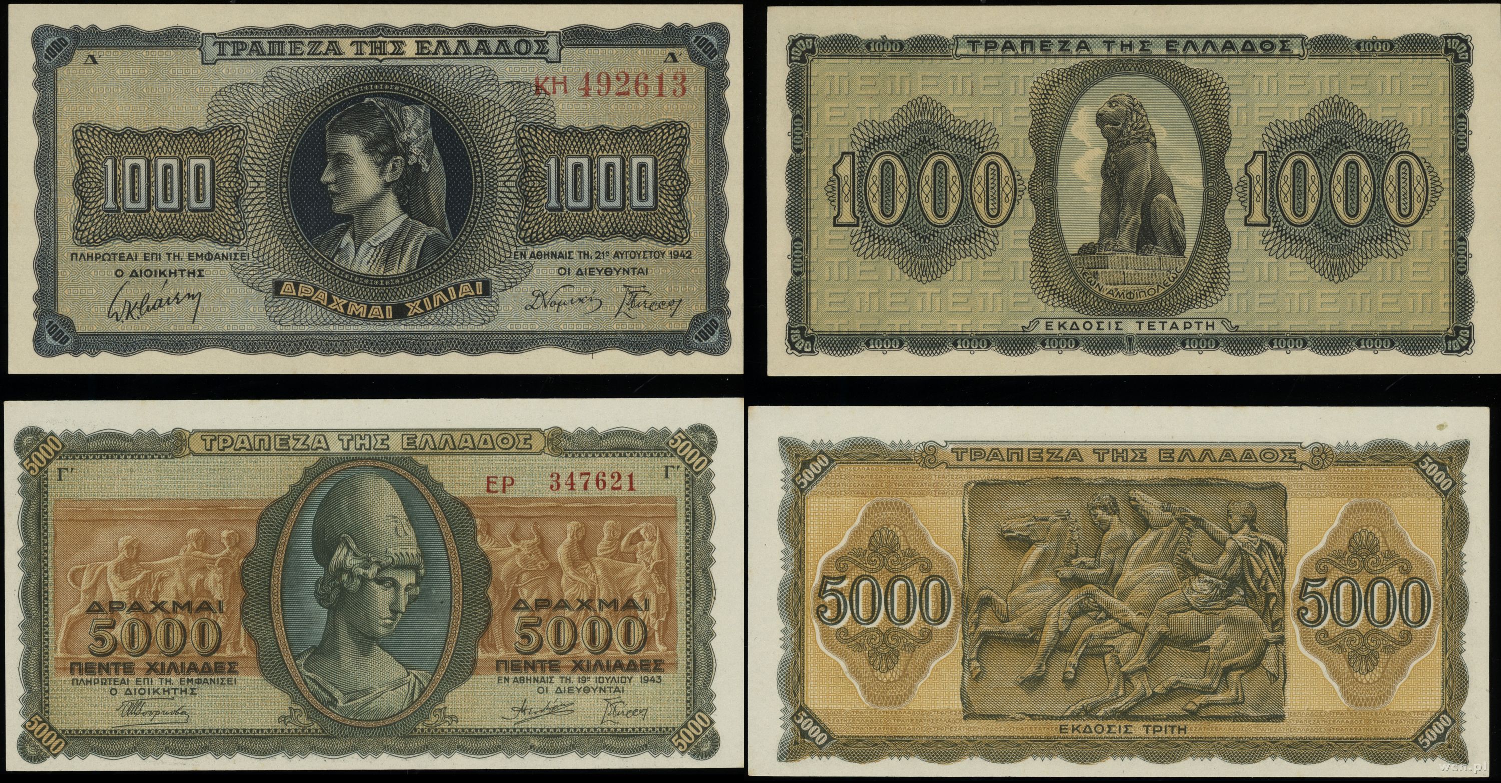 1) 1.000 drachm, 21.08.1942 2) 10.000 drachm, 29.12.1942 ... | I- |