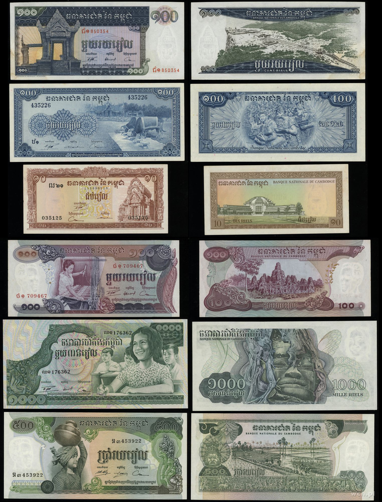 Kambodża, zestaw 6 banknotów, 1962–1975
