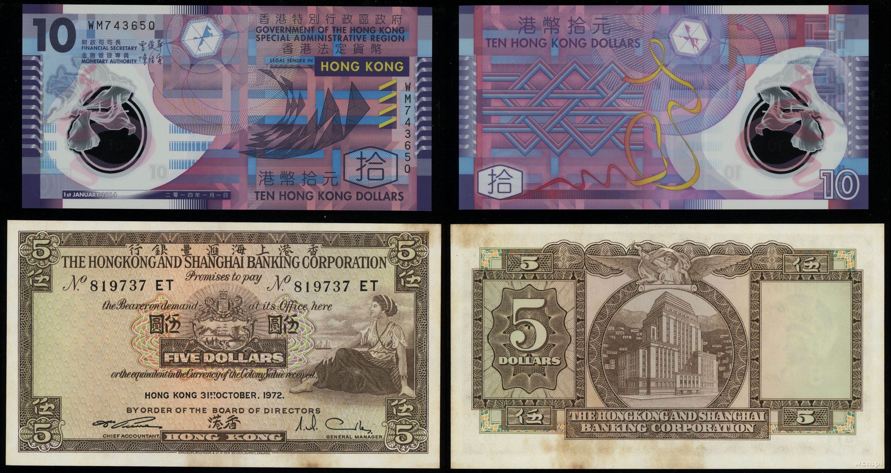 Hong Kong, zestaw: 5 i 10 dolarów, 1972 i 2014