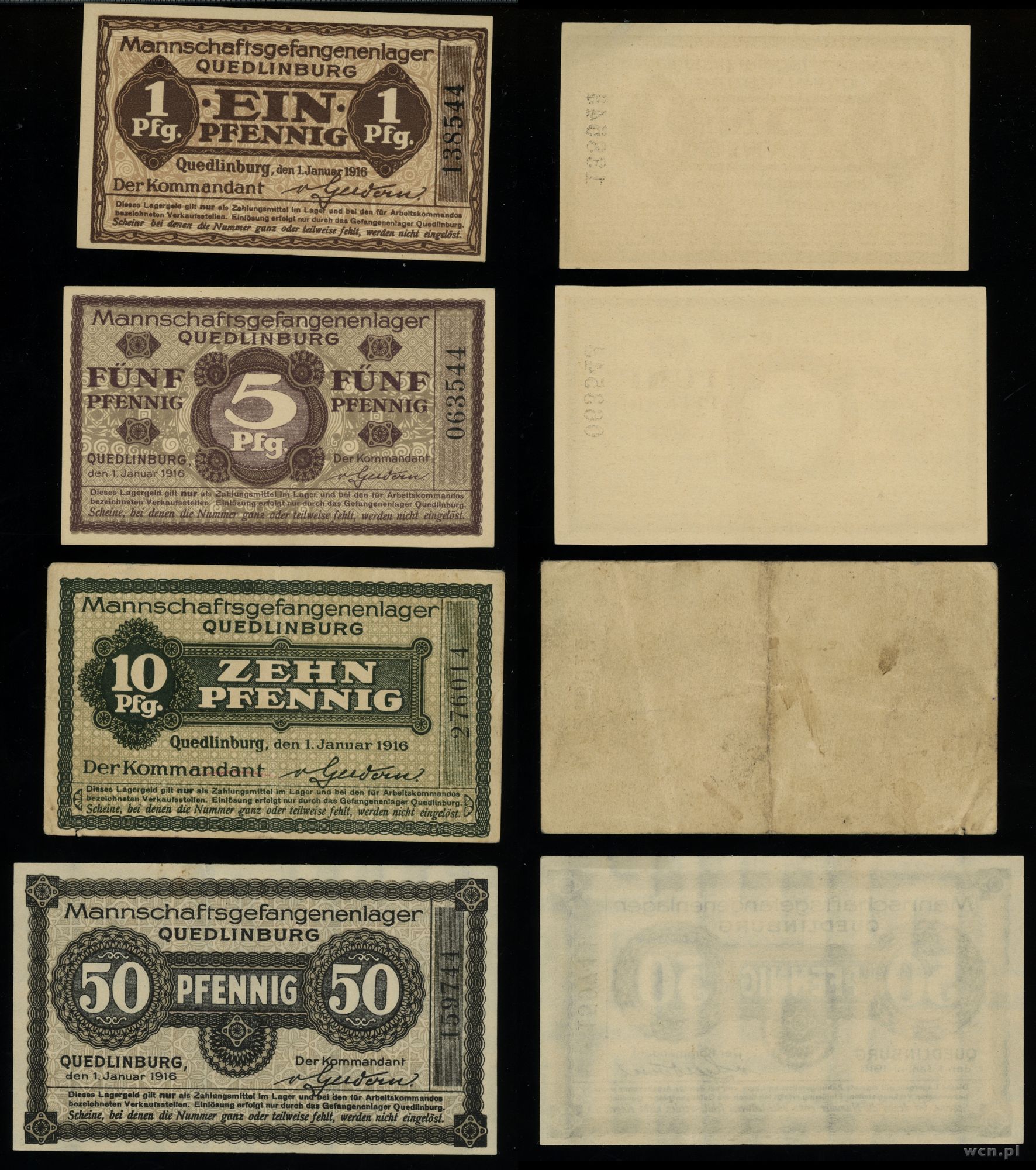 Niemcy, zestaw 4 różnych banknotów obozowych