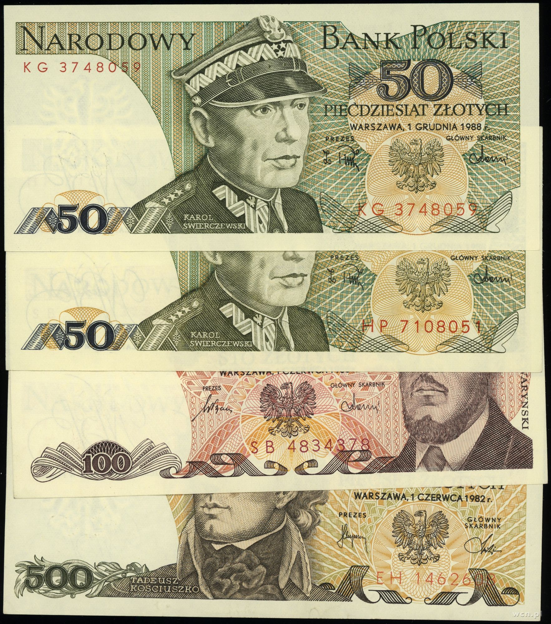 w zestawie: 50 złotych 1988 seria KG, 100 złotych 1986 se... | I/II- |