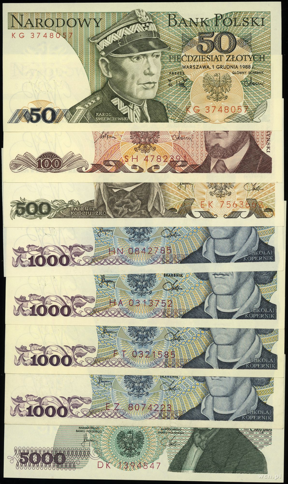 Polska, zestaw: 5 x 5.000 złotych, 1982–1988