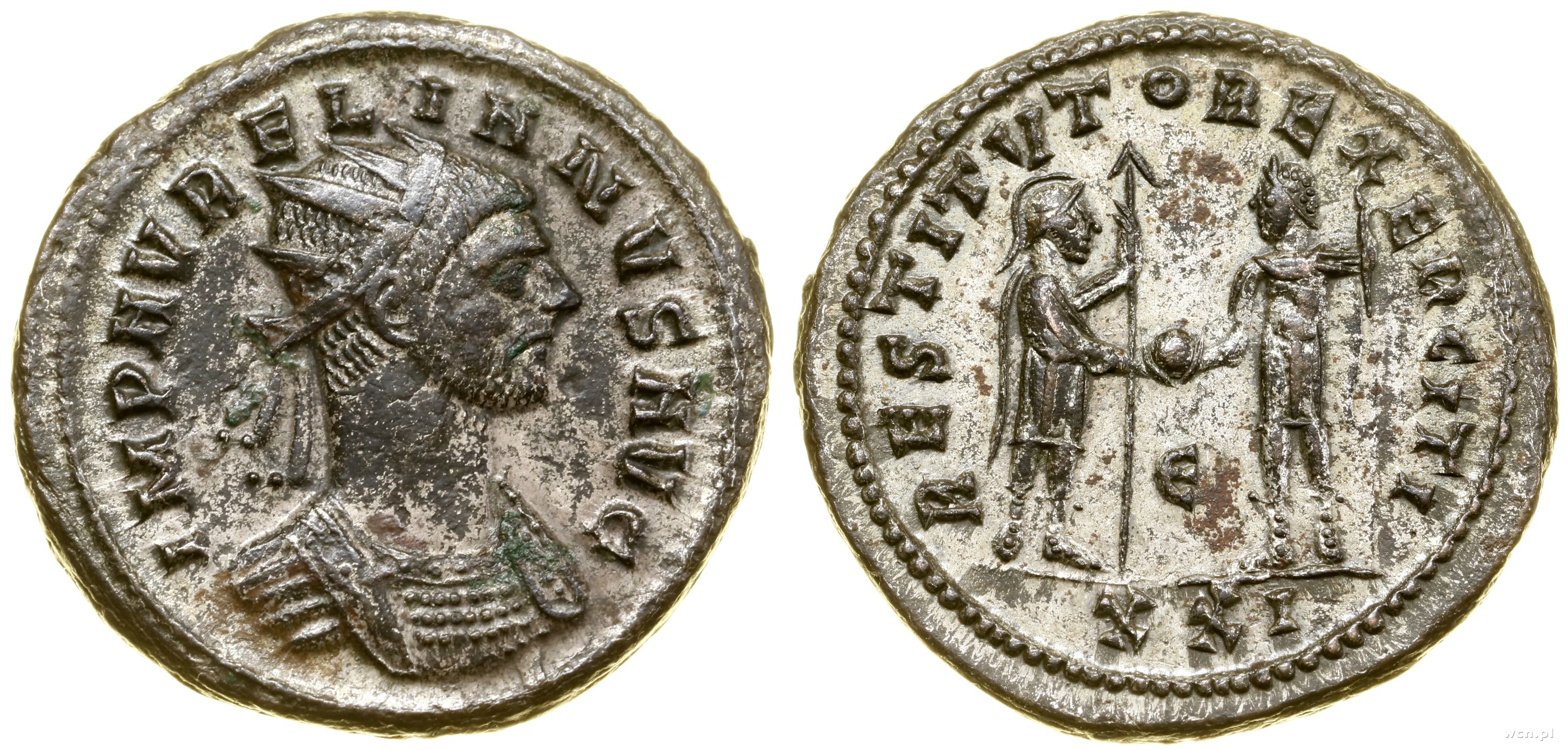 Aw: Popiersie w prawo i napis IMP AVRELIANVS AVG, Rw: Sto... | II+ |