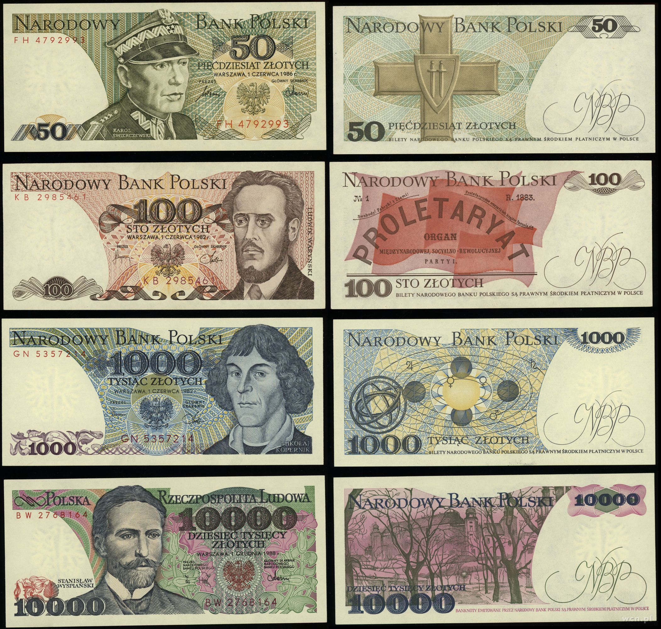 1) 50 złotych 1.06.1986 seria FH 2) 100 złotych 1.06.1982... | I/II+ |