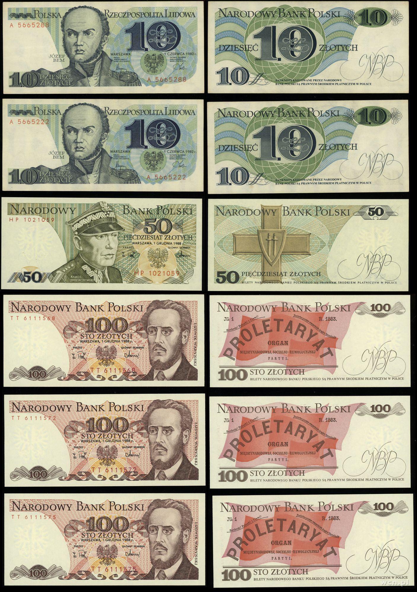 1) 2 x 10 złotych 1982 serie A (st. II) 2) 50 złotych 198... | I/II |