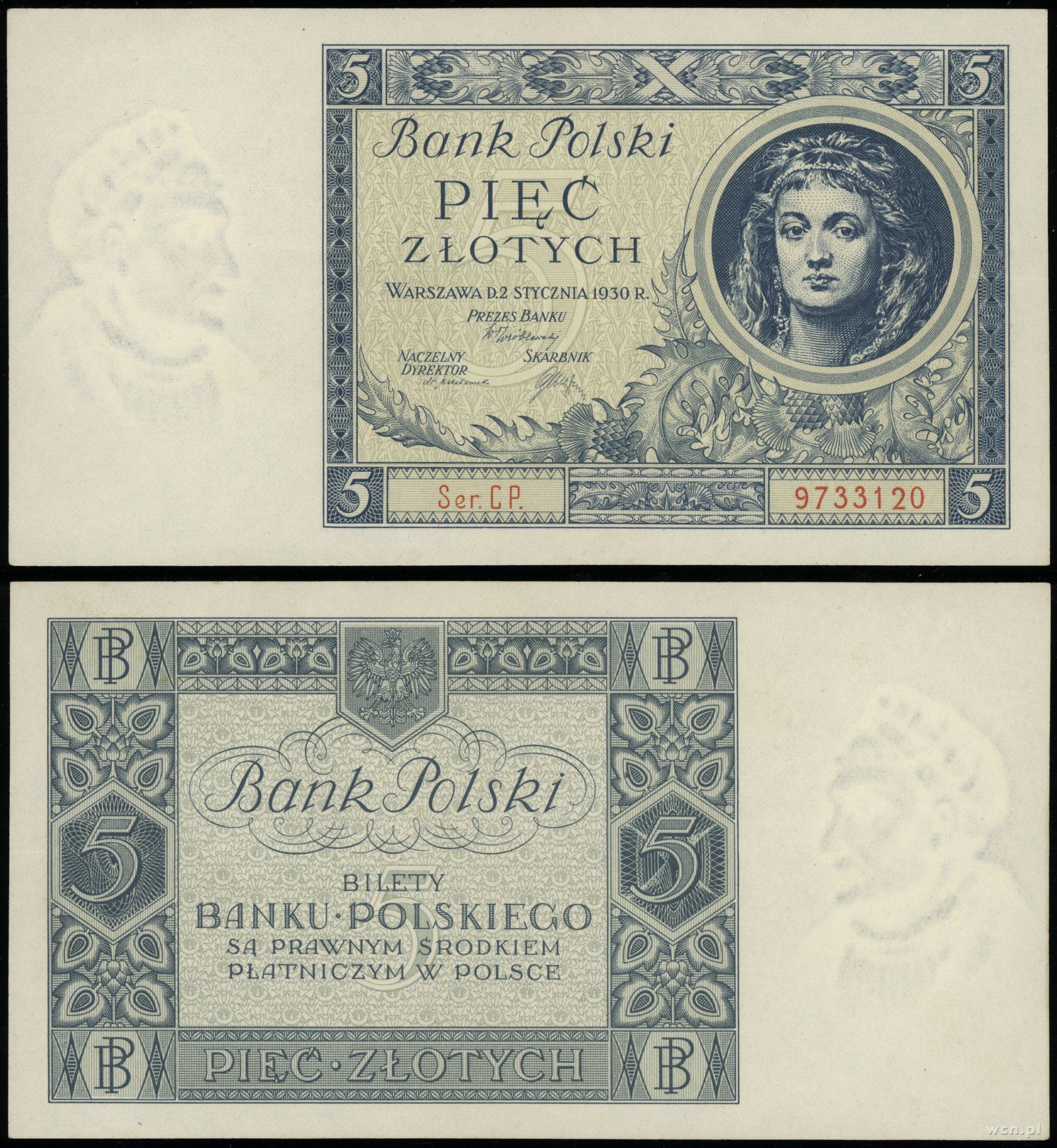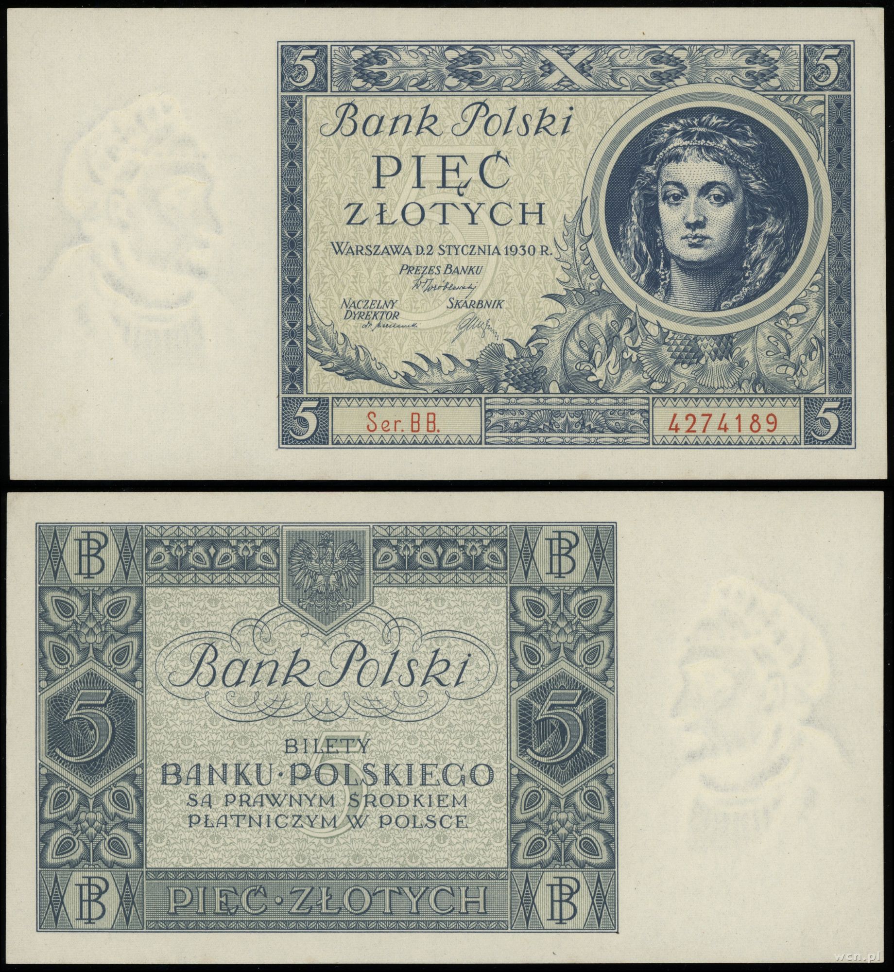 Polska, zestaw: 4 x 5 złotych, 2.01.1930