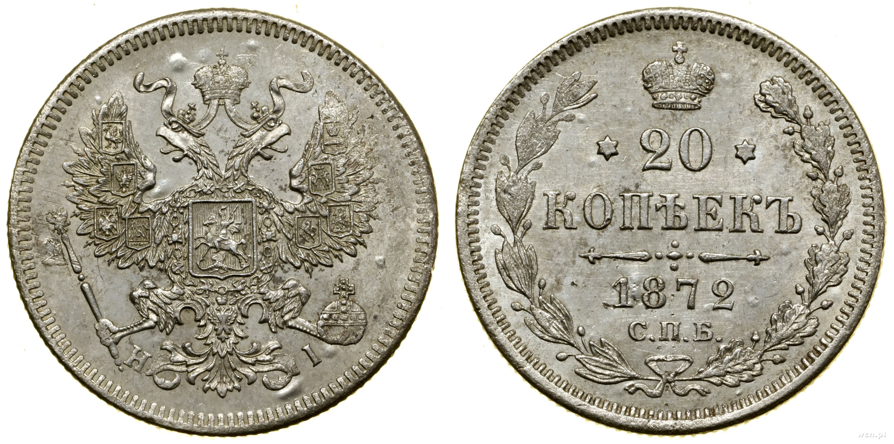 Rosja, 20 kopiejek, 1872 СПБ HI