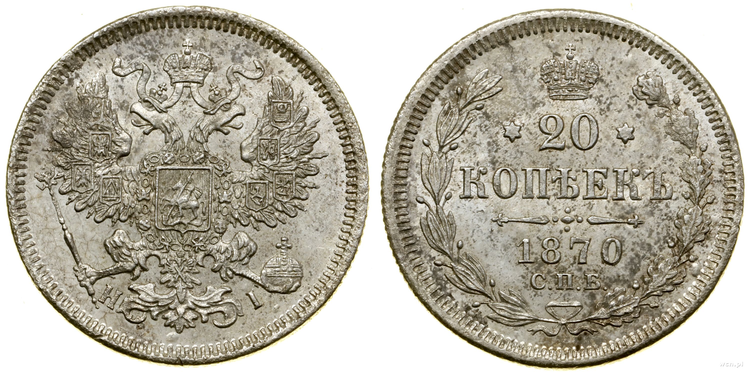 Rosja, 20 kopiejek, 1870 СПБ HI
