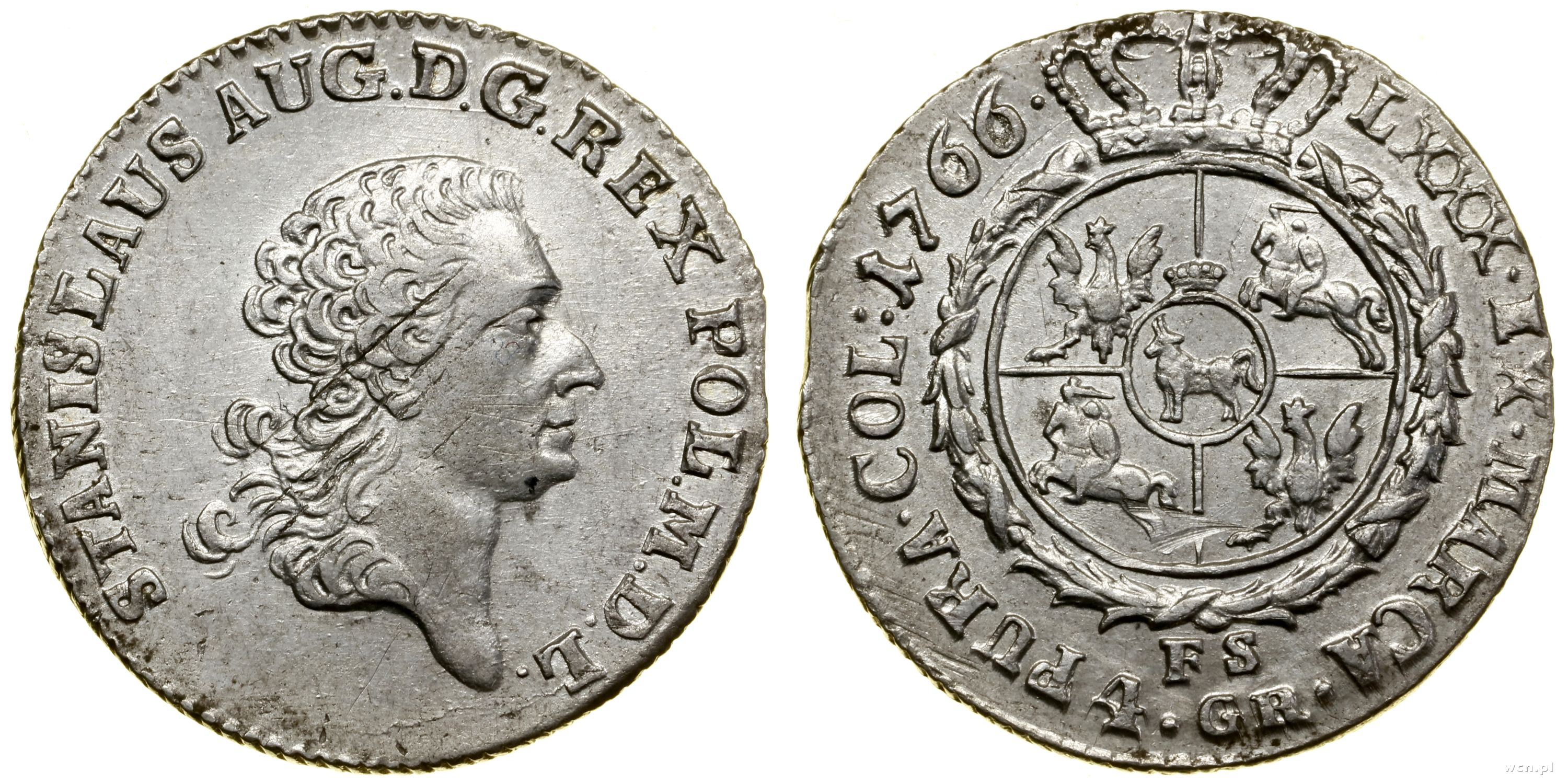 | Opis: | Polska - Stanisław August Poniatowski (1764–1795) - monety koronne, złotówka, 1766 FS, Warszawa, duże Orły, dodatkowy loczek w peruce |