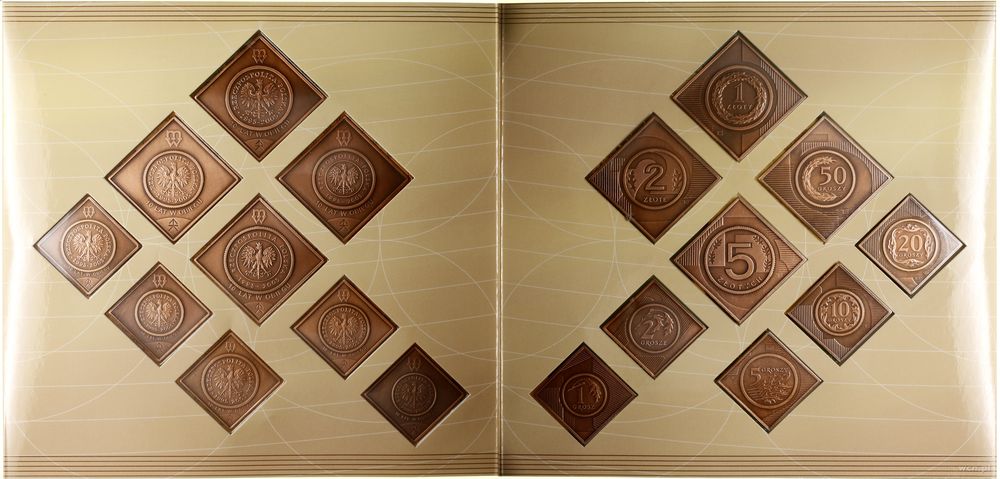 | Opis: | Polska - III Rzeczpospolita Polska (od 1989) - repliki monet, zestaw Mennicy Państwowej, 2005, Warszawa, zestaw 9 monet obiegowych wybitych w formie miedzianych klip od nominału 1 grosz do 5 złotych |