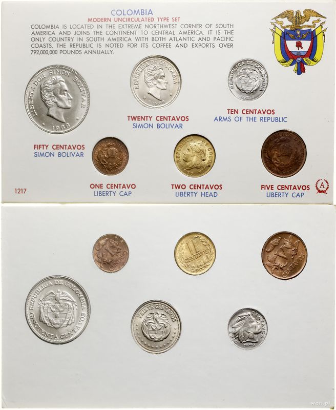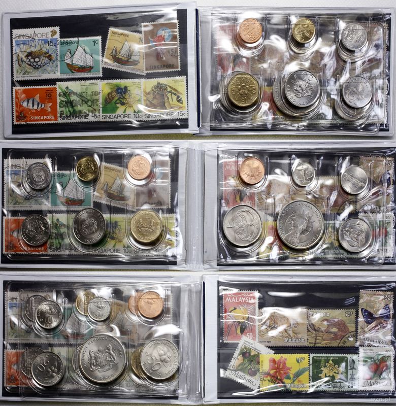 | Opis: | różne, zestaw różnych monet w pamiątkowych opakowaniach, 1) zestaw 4 monet koreańskich (1959–1978) Pjongjang 2) zestaw 6 monet szwedzkich (1984) Eskilstuna 3) zestaw 12 monet oraz 16 znaczków z Singapuru i Malezji 4) zestaw 10 monet brytyjskich (1953) Londyn 5) zestaw 6 monet kolumbijskich (1959–1966) Bogota |