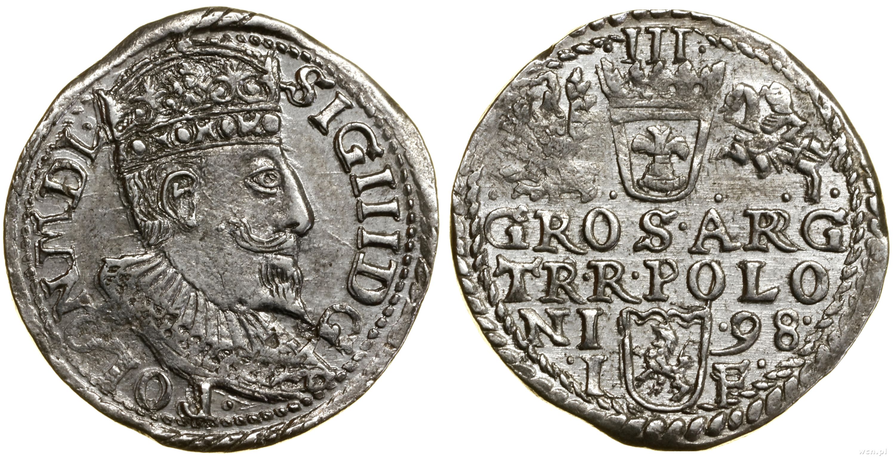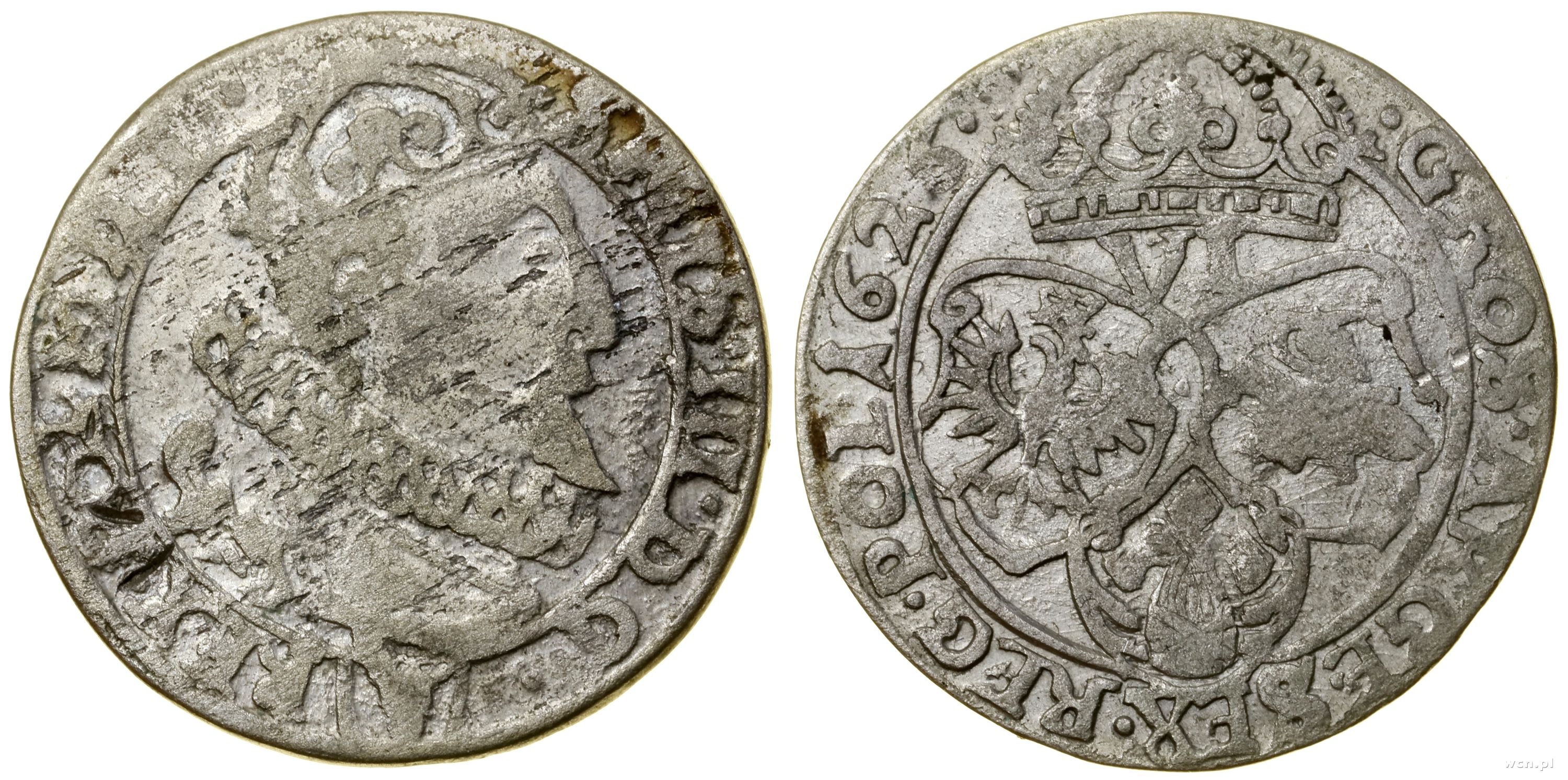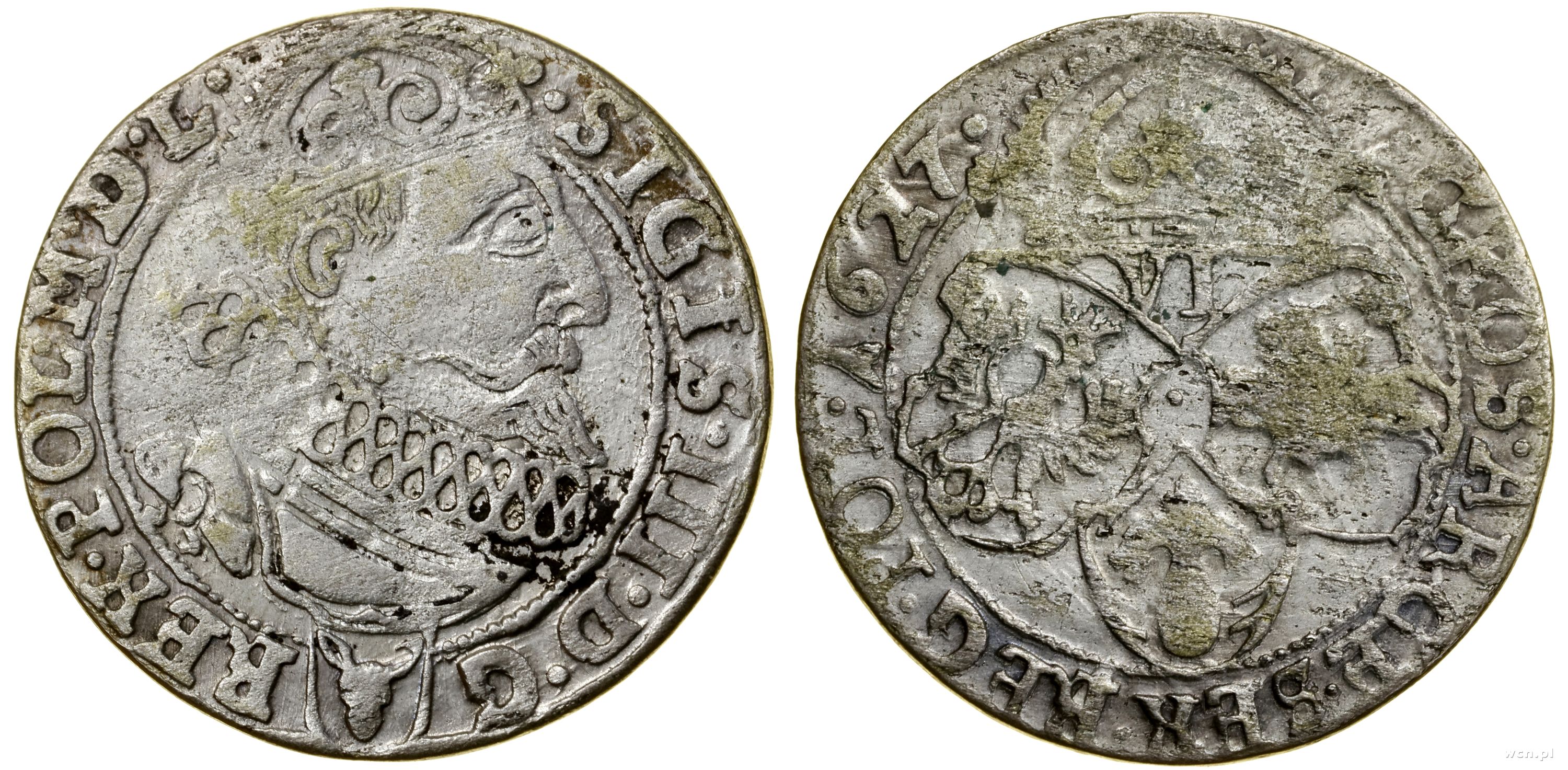 głowa króla z krótką brodą i koroną z wysokim rondem, war... | II/II+ |