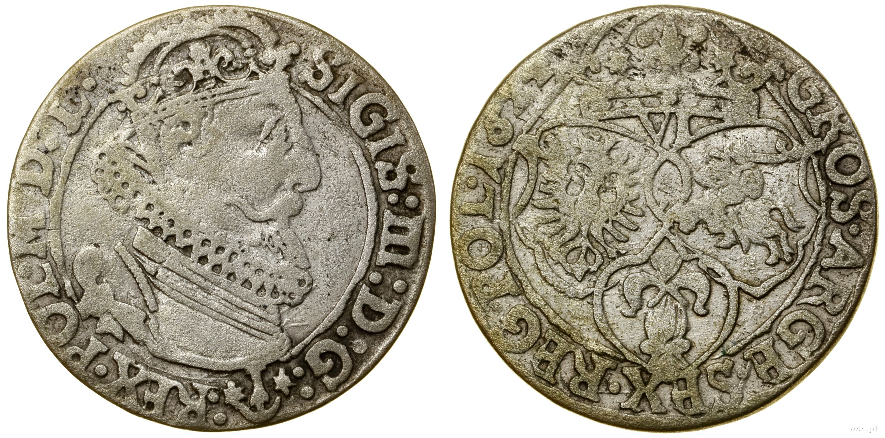 głowa króla z krótką brodą i koroną z wysokim rondem, war... | II+ |