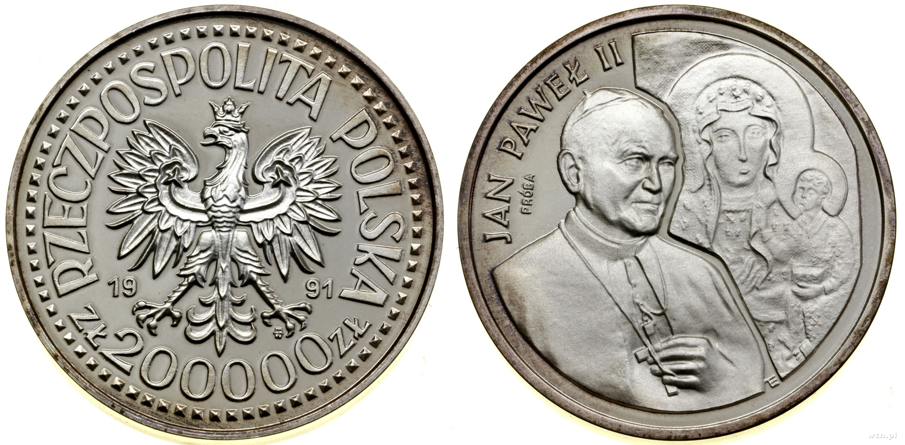 Jan Paweł II – na tle obrazu Matki Boskiej, na rewersie w...