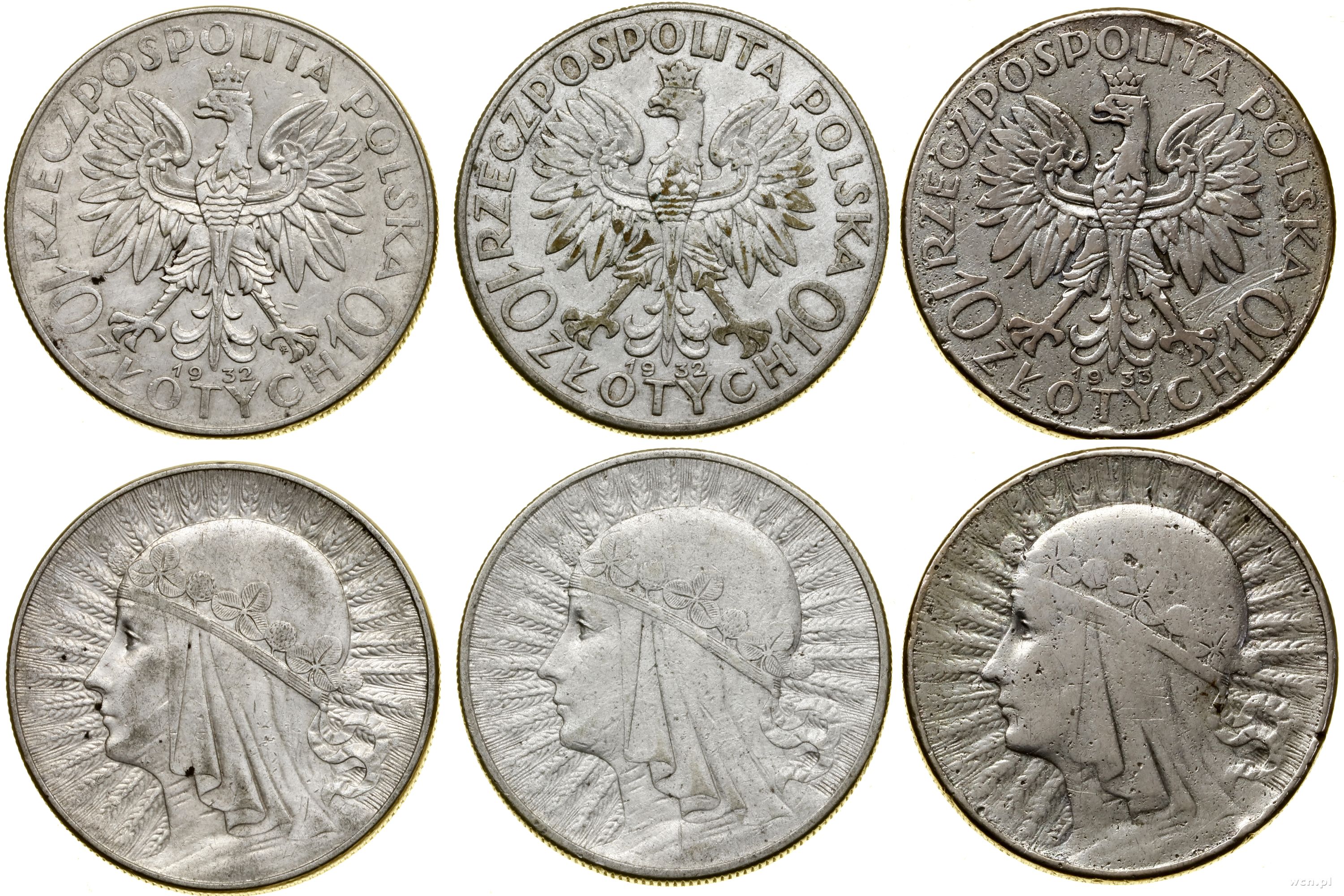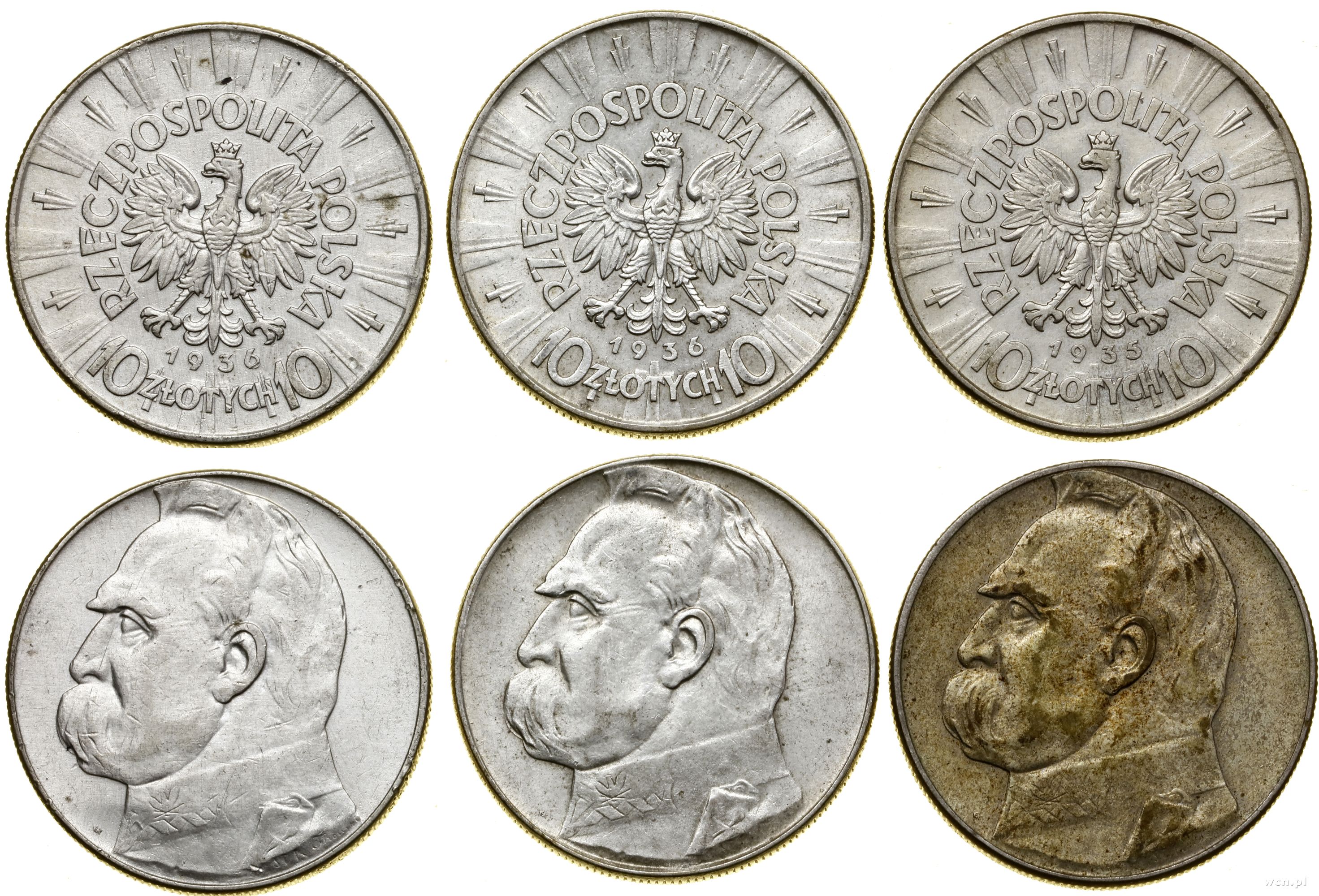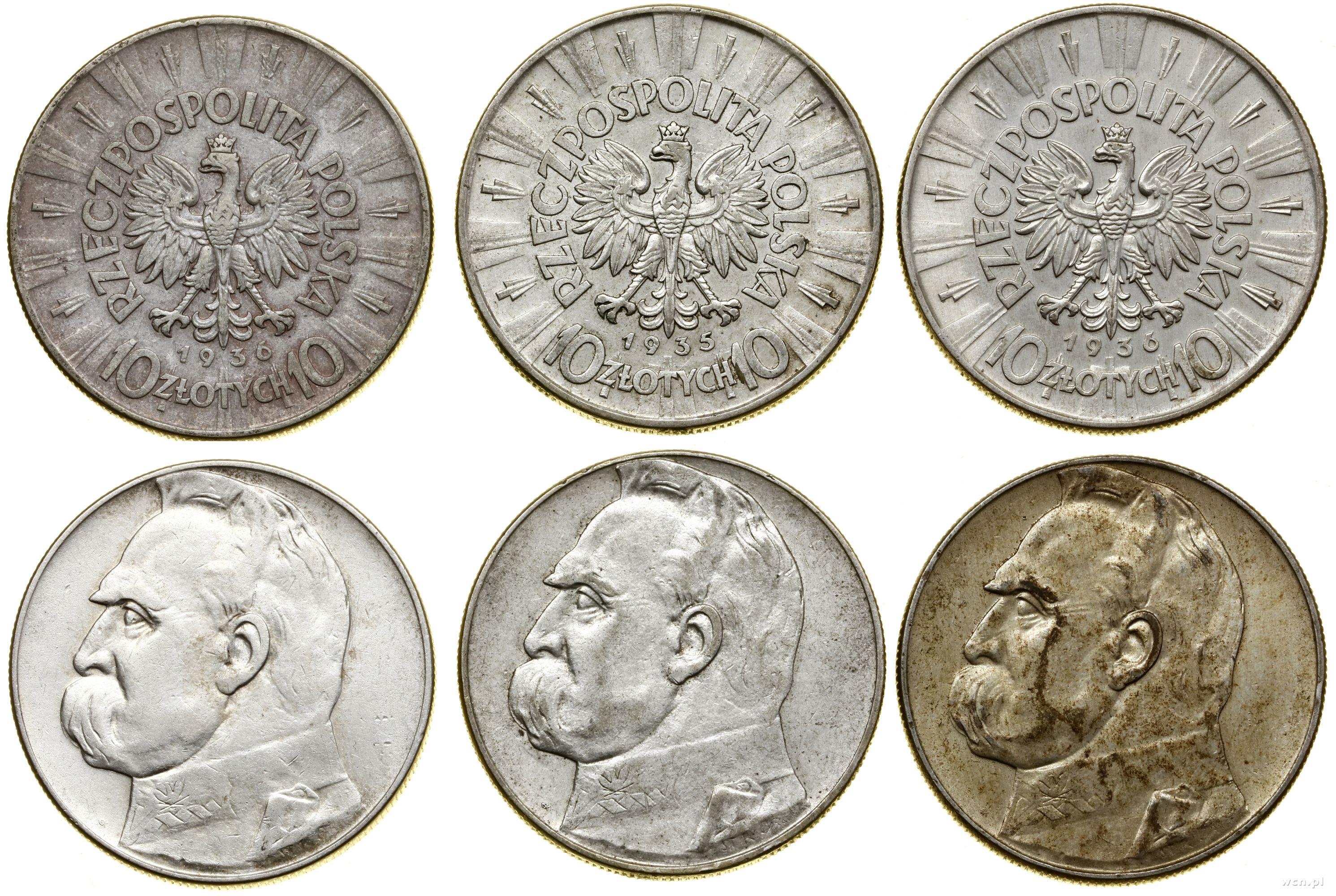 Polska, zestaw 3 x 10 złotych, 1935, 2 x 1936