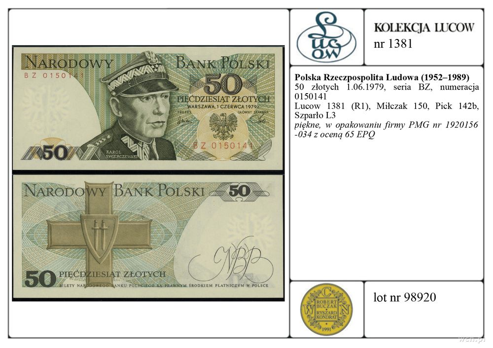 | Literatura: | Lucow 1381 (R1), Miłczak 150, Pick 142b, Szparło L3 |