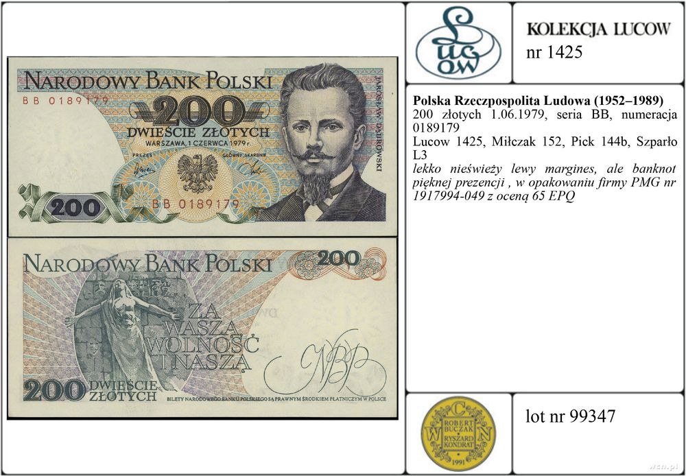 | Opis: | Polska - Polska Rzeczpospolita Ludowa (1952–1989), 200 złotych, 1.06.1979, seria BB, numeracja 0189179 |