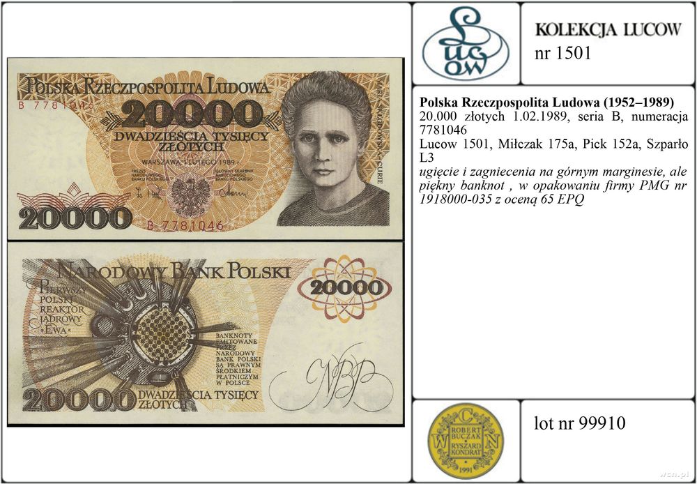 | Literatura: | Lucow 1501, Miłczak 175a, Pick 152a, Szparło L3 |
