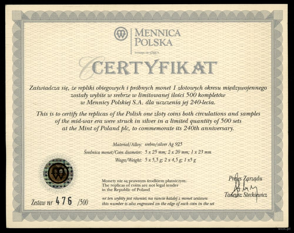 Polska, zestaw Mennicy Państwowej - oficjalne repliki złotówki okresu międzywojennego, 2006
