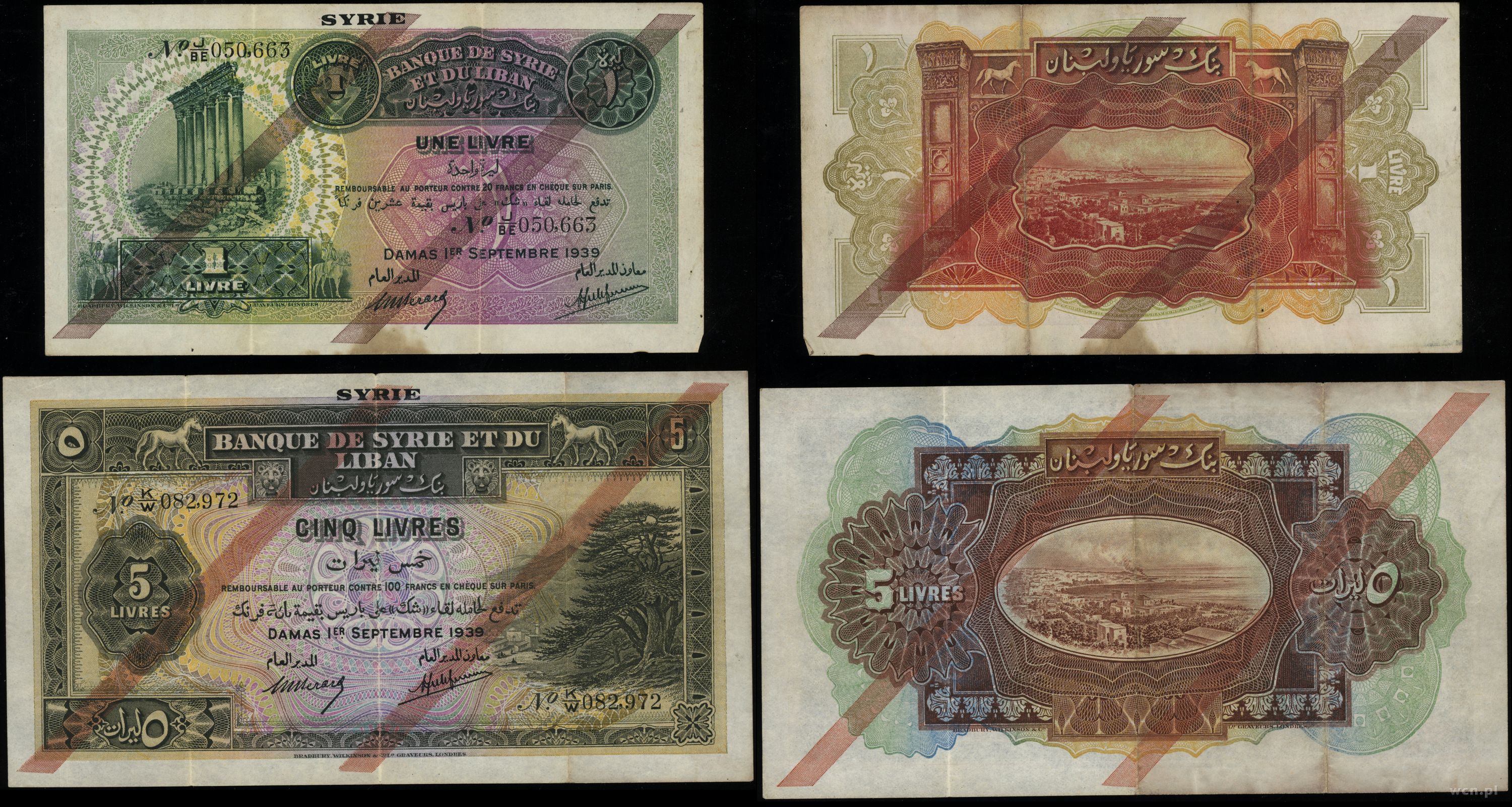 Syria, zestaw: 1 i 5 liwrów, 1.09.1939
