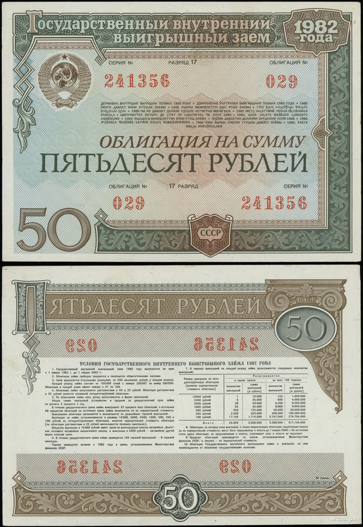 Rosja, obligacja na 50 rubli, 1982