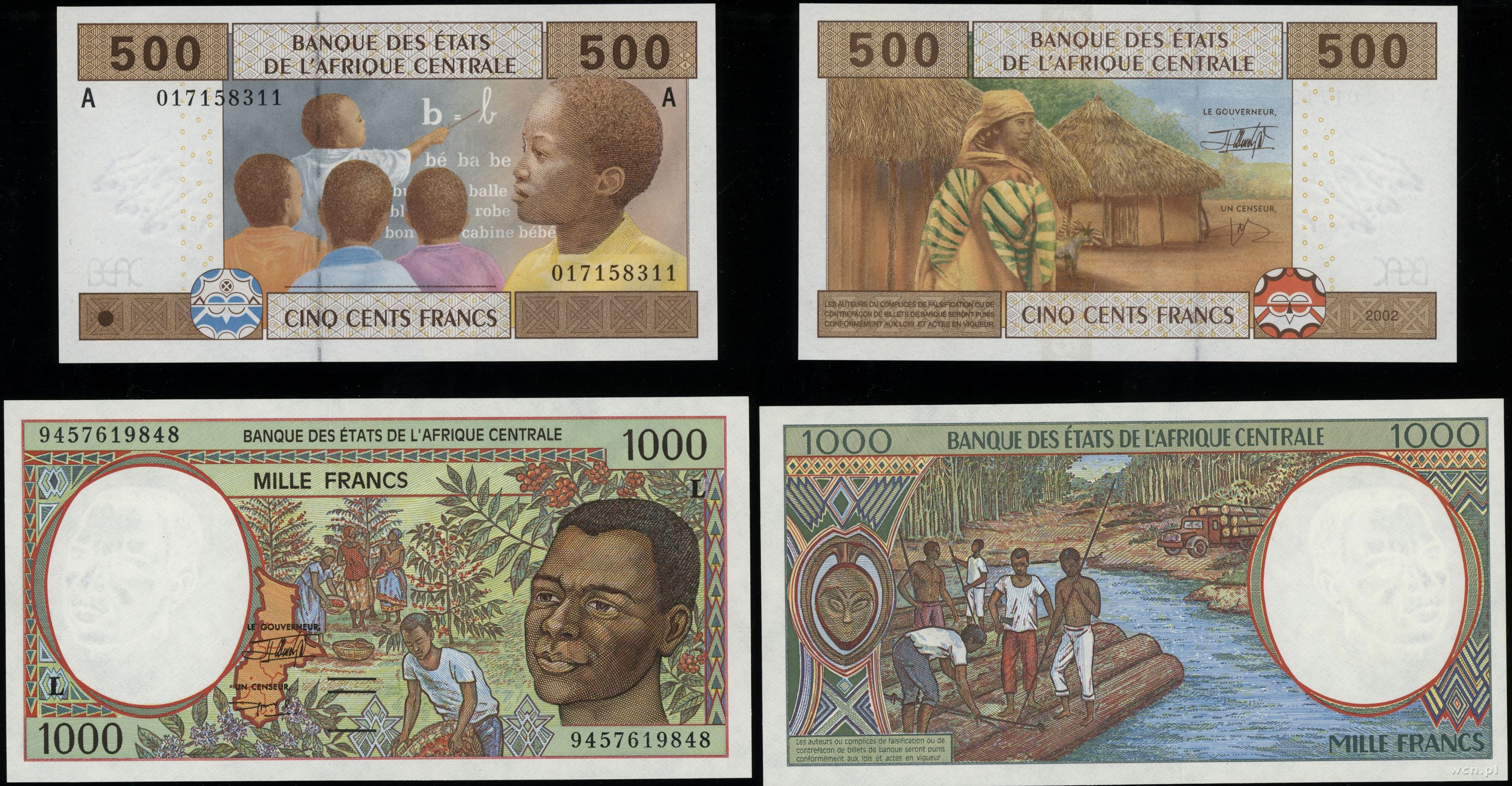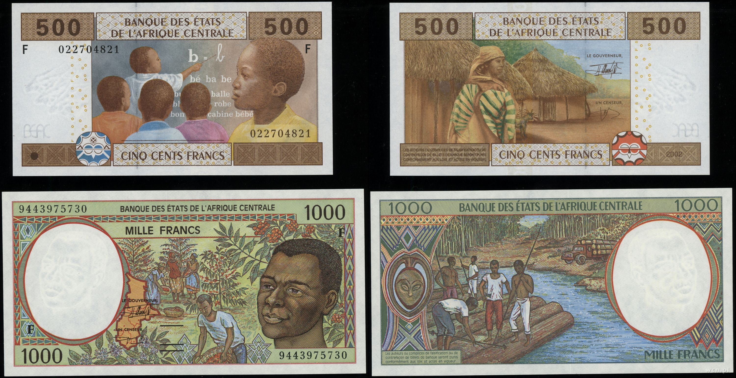 Gabon, zestaw: 500 i 1.000 franków, 2000–2002