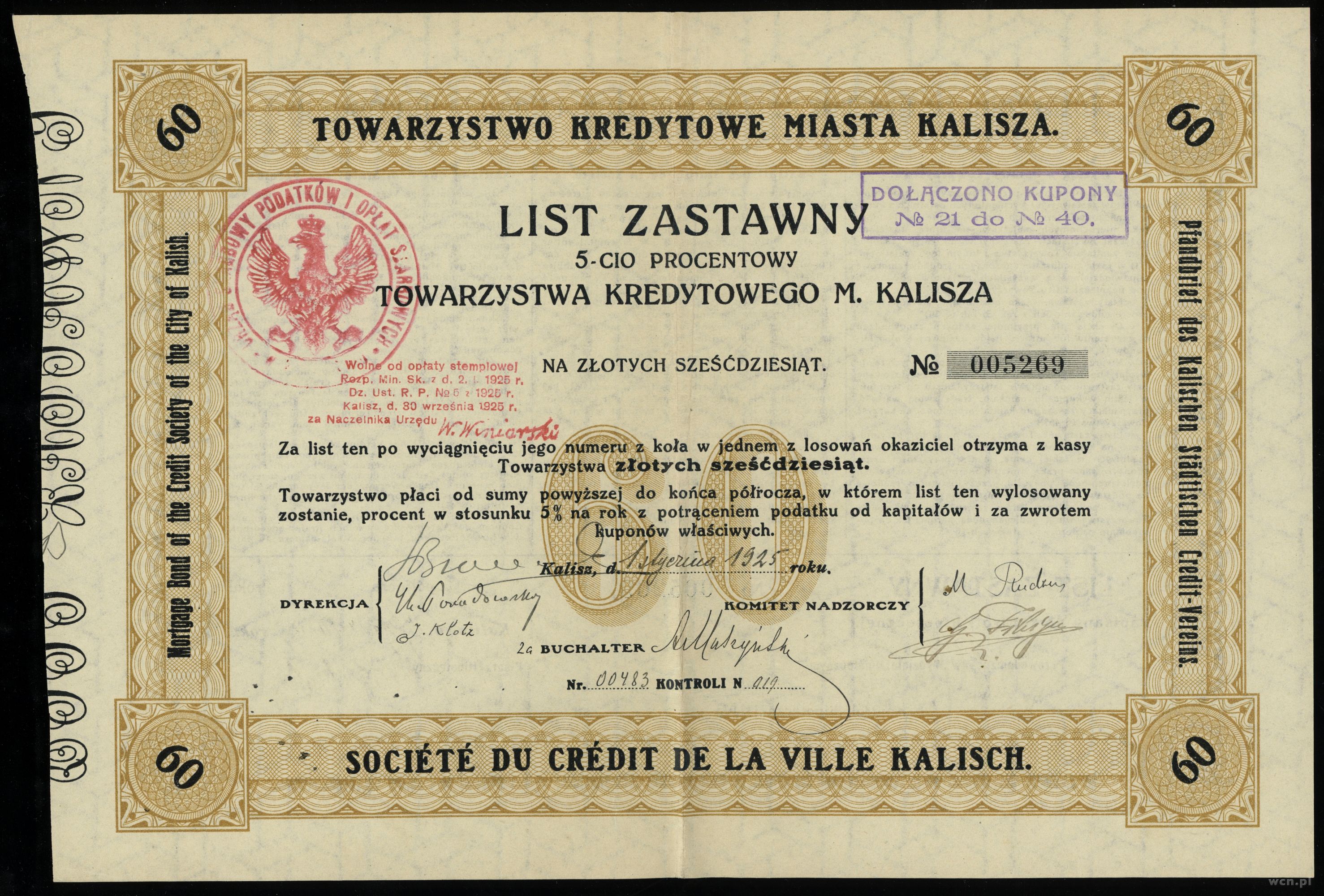 numeracja 0001087, z talonem oraz 15 kuponami na lata 194...